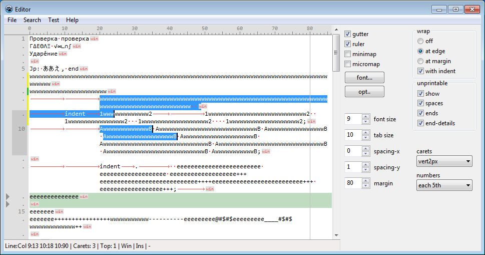 Editor control for Lazarus, alternate to SynEdit "for human beings" (Python requests). Implemented much. Implemented multi-carets from birth.